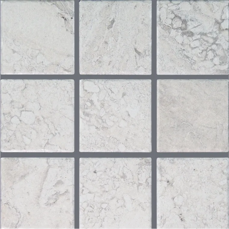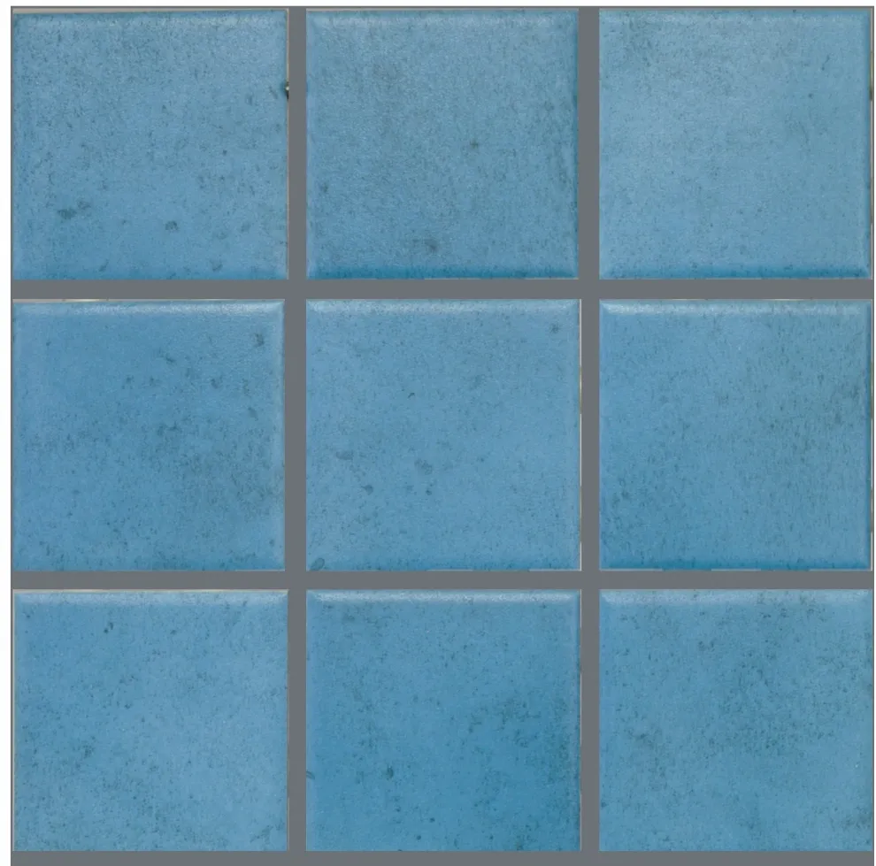 O modelo é revestido com pastilha cerâmica 15 x 15cm.